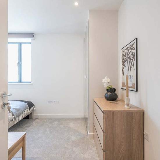 Presenting a stunning two bedroom apartment located in Leonora House in a desirable area of Steatham. Upon entertaining you are greeted with a hallway that leads into the open-plan kitchen / reception area with full-length windows leading to a private balcony which provides views of the surrounding area. The luxury kitchen is fitted with high end integrated appliances including a dishwasher, fridge-freezer, washer-dryer oven and dishwasher. The bedrooms are generously sized and both filled with natural light and both include built-in ward...