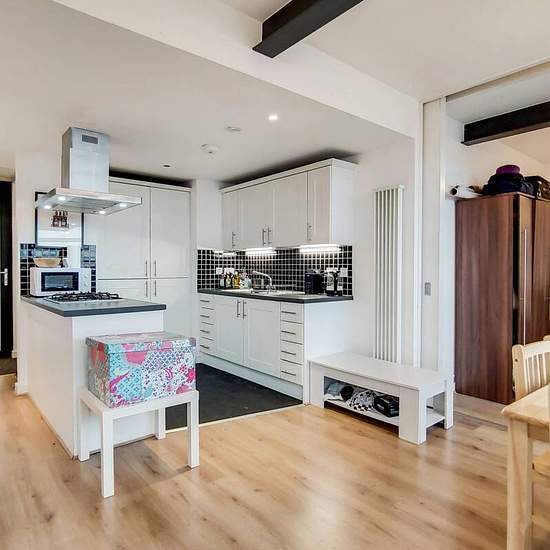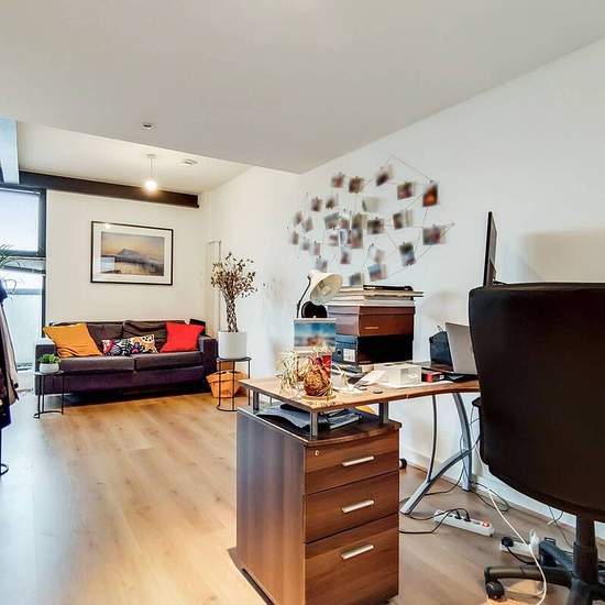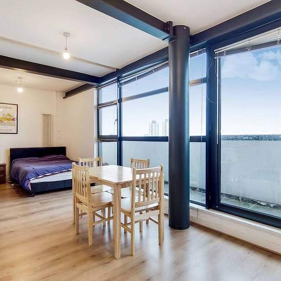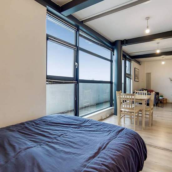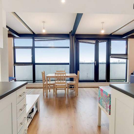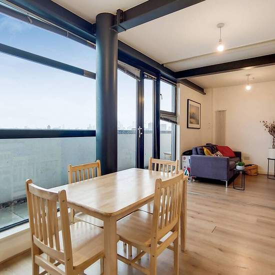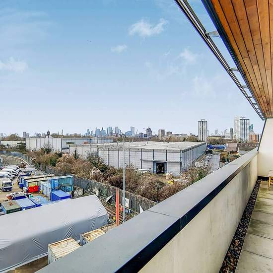 Modern 5th floor apartment Open plan reception and fully-equipped kitchen Private balcony looking onto city views Spacious main double bedroom 2nd Stylish double bedroom Subway-tiled bathroom Ample hallway storage Beams and wood floors throughout Set in a prime location, this spacious 2 bed apartment offers trendy interiors and open plan living, with light wood flooring and retaining dark beams throughout. A stunning private balcony looks onto cityscape views. Hallings Wharf Studios is in a sought after location moments from Stratford High S...