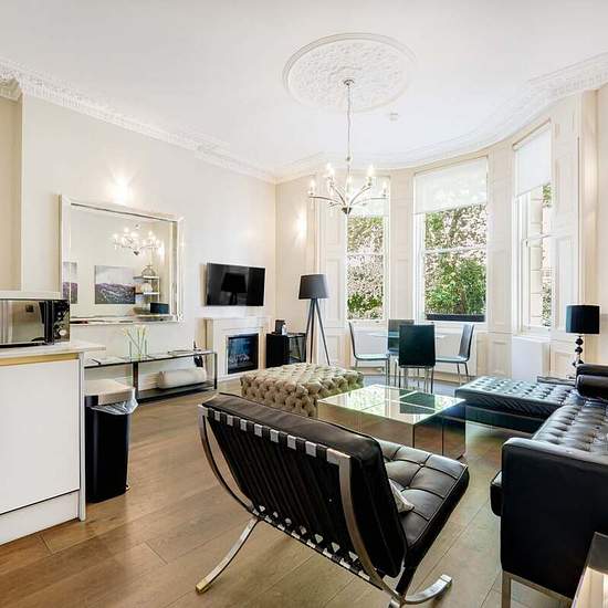 Short Let - This recently refurbished two-bedroom apartment is situated on one of South Kensington's most prestigious garden squares. *£295 per night - minimum stay one month* The property is split over two floors with the ground floor occupied by a large living room with open plan kitchen and views over the communal gardens. Two double bedrooms, one with a smart ensuite shower room, are located on the lower level. There is a further shower room off the hallway. The flat benefits from both access to communal gardens and a day porter. Cranley...