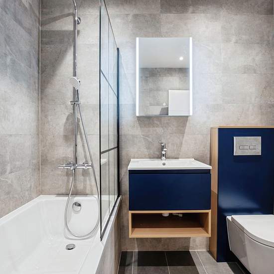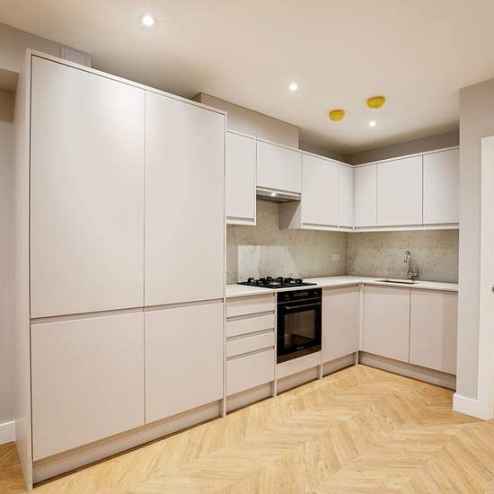 This two-bedroom flat, located in Limes Grove, London, offers a practical and modern living space. The property features a well-equipped kitchen-diner, ideal for meal preparation and dining. The kitchen includes modern appliances, ample storage, and a sleek design, making it a functional space for everyday use. The flat comprises two bedrooms, providing adequate space for residents. The bathroom is fitted with contemporary fixtures, including a bathtub with a shower, a washbasin, and a toilet. The reception area offers a comfortable space fo...