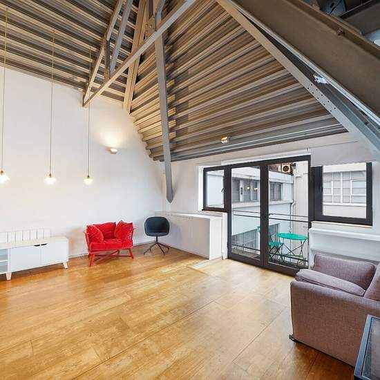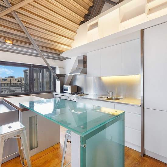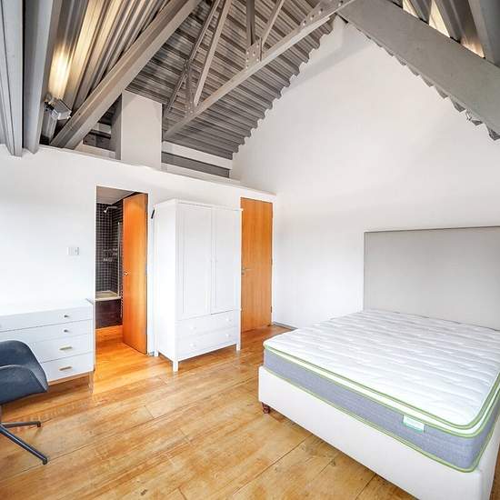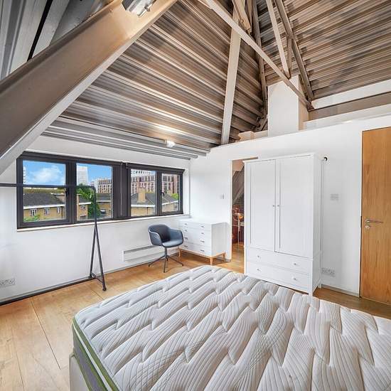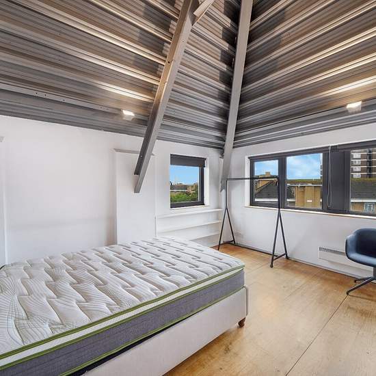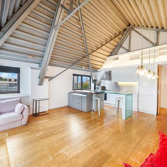 **SHORT LET** A two bedroom fourth floor apartment set within a beautifully converted old Aircraft Factory, designed by architects Munkenbeck & Marshall. The contemporary apartment comprises two double bedrooms, two bathrooms (one en-suite), large open plan reception room/kitchen and ample storage space. Additional benefits include lift access to all floors and a private balcony.