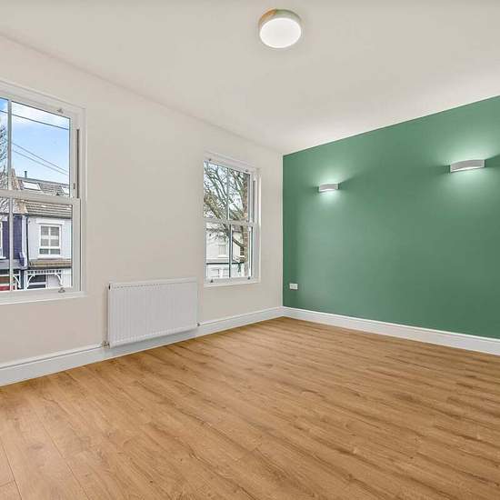 A stunning, fully refurbished two-bedroom first-floor apartment on Fingal Street, Greenwich. This top/first-floor flat is light and airy, with just one flat below, offering privacy and a peaceful setting on a quiet street. The property features an open-plan living and dining area with a stylish new kitchen, perfect for modern living and entertaining. There are two generous double bedrooms with new carpets and a contemporary bathroom with a bath. Wooden flooring runs throughout the living areas, complemented by beautiful sash windows that add...