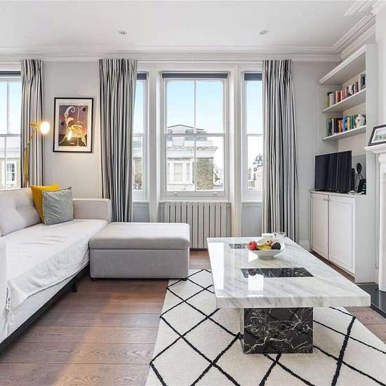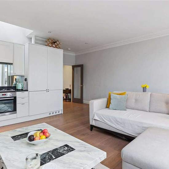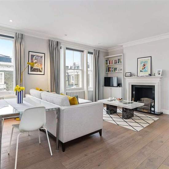 This is a well presented and modern apartment in a period conversion on this desirable street in SW10. There is an open plan reception room with fitted kitchen and built in appliances and wooden floors. There are two double bedrooms both of which have en-suite shower rooms. The flat also benefits from a South facing large roof terrace.