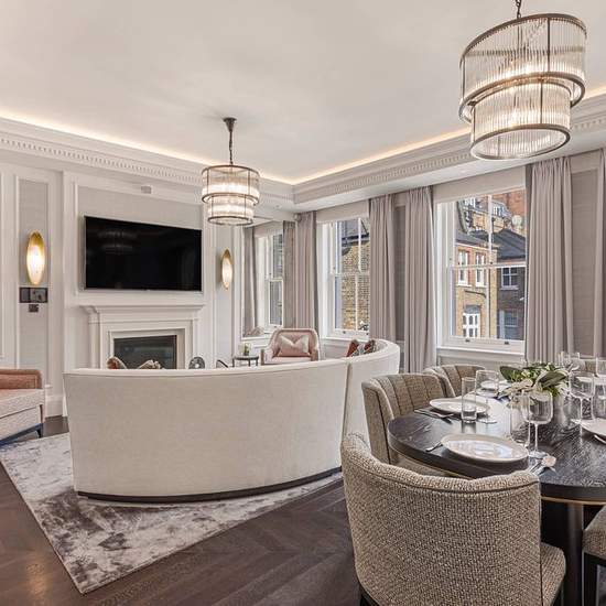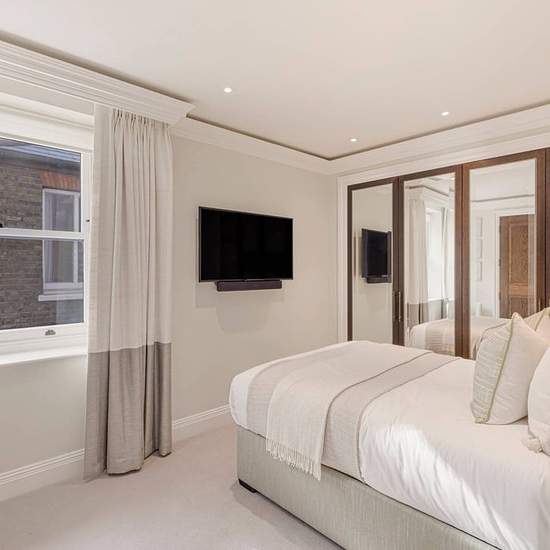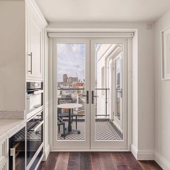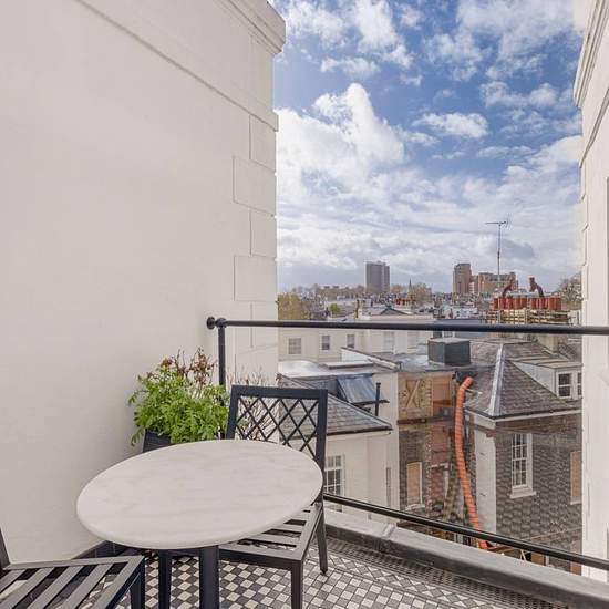This distinctively appointed apartment is situated in a refined stucco-fronted building in Kensington. It has a spacious reception room with three large windows that bring in plenty of natural light throughout the day. The kitchen, which is connected to the reception room through bifold doors, has oak flooring, marble worktops and built-in units as well as an integrated oven, induction hob, microwave, fridge-freezer and dishwasher. The apartment also comes with two bedrooms with ample storage space.