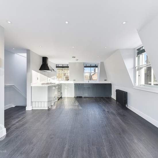 Beautifully Refurbished Large Private Roof Terrace Exceptional Finish 790 sqft Pet Friendly Split Level Dark Wooden Flooring Property Overview This exceptional two double bedroom duplex apartment is arranged over two beautifully designed floors, offering generous living space and high-quality contemporary finishes throughout. The principal bedroom benefits from extensive built-in storage and a sleek en-suite bathroom featuring a spacious walk-in shower. The second double bedroom also offers integrated storage and is served by a stylish separ...