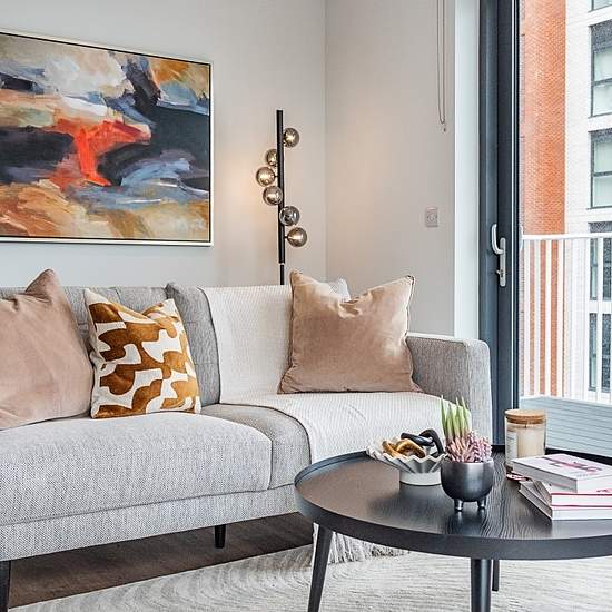 This spacious two bedroom, two bathroom apartment at One Maidenhead features an open-plan living area for the kitchen, lounge and dining spaces, with the addition of a terrace. Integrated kitchens feature energy-efficient Beko appliances including an oven, an induction hob, dishwasher, built-in microwave and come with plenty of cupboard space. The bedroom has built-in wardrobes and your washer-dryer is conveniently tucked away in a utilities cupboard. This fully-furnished apartment comes with everything you need to help you feel at home rig...