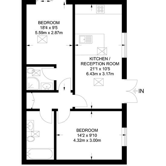 2-Zimmer-Wohnung in New Malden