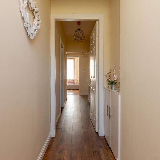 Diese Wohnung im ersten Stock besteht aus: Eingangsdiele mit zwei Einbauschränken; Wohnzimmer mit elektrischem Kamin und Platz für einen Schreibtisch; Einbauküche mit Gasherd, Backofen, Mikrowelle, Kühlschrank, Geschirrspüler und Waschmaschine; Einzelzimmer mit Einbauschrank; Doppelzimmer; und Badezimmer mit Dusche über der Badewanne. Die Wohnung verfügt über eine Gaszentralheizung und größtenteils doppelt verglaste Fenster. Außen gibt es Parkmöglichkeiten am Straßenrand sowie einen gemeinschaftlichen Trockenrasen. Die Immobilie verfügt auße...
