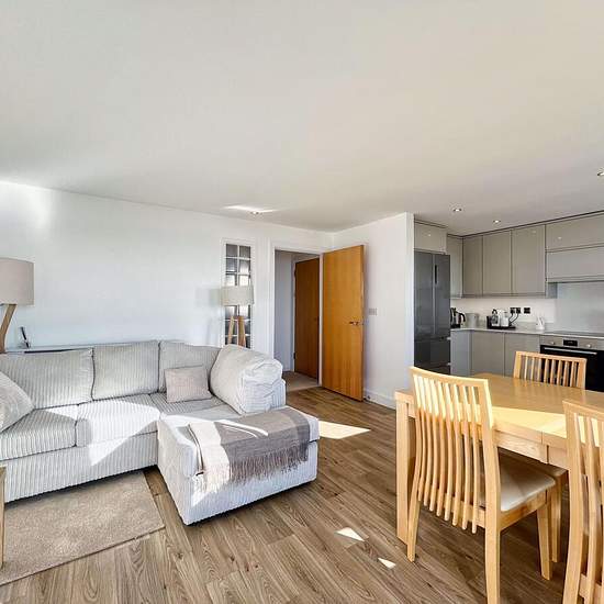 The property is situated within a purpose built apartment block on the first floor. The accommodation comprises , a wide central hallway. The impressive Open Plan Living, Dining and Kitchen with UPVC double glazed sliding patio doors to the Balcony. The Kitchen has been newly upgraded and now features a contemporary range of high gloss fitted base and wall mounted units, with integrated appliances to include; dishwasher, washing machine and an electric oven with four burner induction hob. There is a ceramic sink unit positioned below the fro...