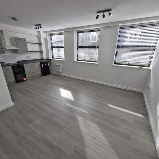 Abode are delighted to offer to market this newly renovated first floor apartment. Finished to a high standard throughout, this stunning flat comprises of a light and open plan living space, with three large double glazed windows. A newly fitted shaker style kitchen include fridge, basin, washing machine, and electric oven. The shower room is finished to a similar high standard and includes a lovely blue lit shower, basin with vanity beneath and WC. The building itself is an imposing Tudor period building, centrally located in Royston and be...