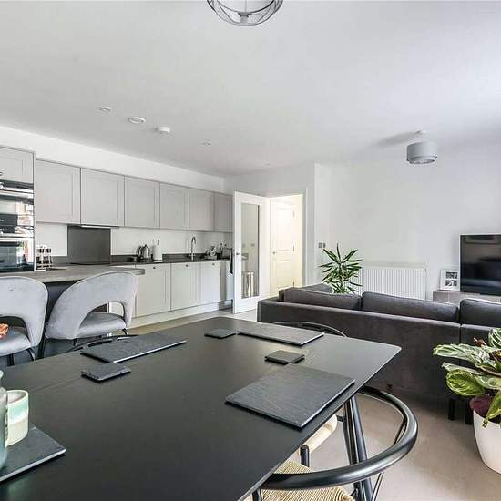 Quinton Court is a stunning collection of apartments located in Sevenoaks, offering luxury living within reach of the many amenities of Sevenoaks town, and the transit convenience of Sevenoaks station. Opening into the apartment, the hallway leads through to the spacious open plan living room with light wood effect flooring throughout, and double doors opening onto the terrace. The fitted kitchen boasts a range of modern shaker style upper and lower cupboards, composite worktops and a selection of appliances. The generously proportioned prin...