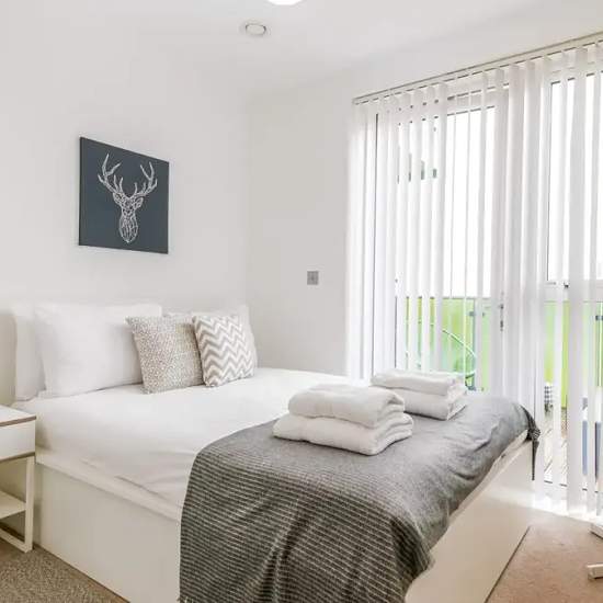 This gorgeous two-bedroom apartment is situated in the idyllic area of Wembley. Located on the second floor, this beautiful Central London flat can comfortably accommodate up to four people. The smoke-free property features a living room, two bedrooms, two bathrooms, a kitchen, and a balcony. The living room is equipped with a comfortable sofa, a dining table, and a Smart TV. The kitchen is fully equipped with modern appliances and includes all the cooking utensils that you could need when preparing a quick snack or your evening dinner. The ...