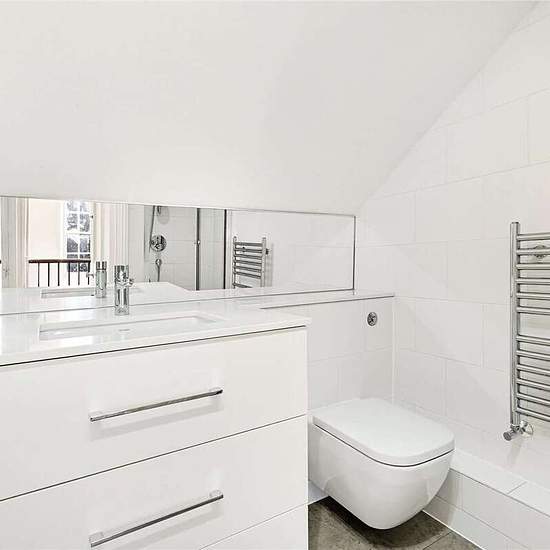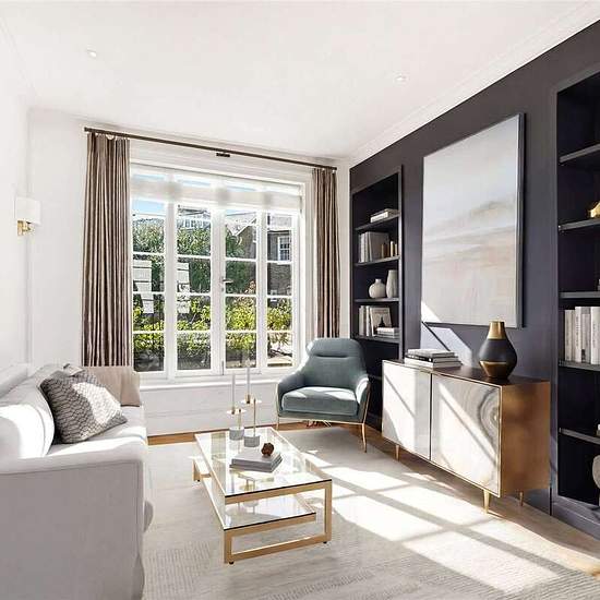 A lovely family house with a pretty South facing garden. Raised ground floor reception room with wood floors, cloakroom, stairs down to a good sized and fully fitted kitchen/breakfast room, separate utility room, room that could be used as a study or gym, Stairs to first floor with a half landing study area, first floor principal bedroom with ensuite bathroom, second floor two further double bedrooms, shower room NOTE: Some of these photos have been dressed using CGI