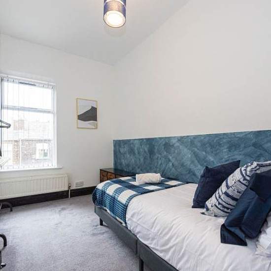 Welcome to your stylish home-away-from-home in vibrant Manchester! This thoughtfully designed terraced house features a luxurious 2-bedroom and a kitchen, perfect for travelers, couples, or visiting professionals. Fresh linen Wi-Fi available Fully equipped kitchen Free street parking The space Spacious 3-Bedroom Apartment Sleeps Up to 5 Guests Bedroom 1 – 1 Double bed Bedroom 2 – 1 Single bed Bedroom 3 - 1 Doubled bed Living Room - with TV and pool table 2 Bathrooms – Equipped with Essentials Free WiFi – Stay Con...