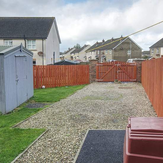 Three bedroom end townhouse with oil fired central heating. The ground floor comprises of a spacious living room with open fire, kitchen fitted with an oven and hob, separate utility room and wc. The first floor has three spacious bedrooms and a family bathroom. Externally there is an enclosed garden with driveway and shed. EPC rating: D. Landlord Registration Number: NID 5621315.