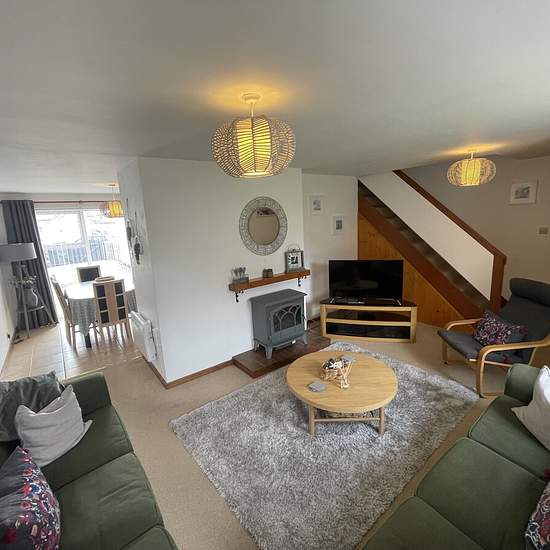Zero Deposit Guarantee Available Entering through the porch as the front of the property, there is currently a tumble dryer and small seating area for convenience. The accommodation is well laid out and comprises a spacious living room and a good-sized kitchen diner on the ground floor, along with a useful outside WC. Upstairs, there are three bedrooms, all currently set up as twin rooms, and a modern shower room. The property benefits from electric heating, driveway parking, and a private garage—a rare feature in such a central village l...