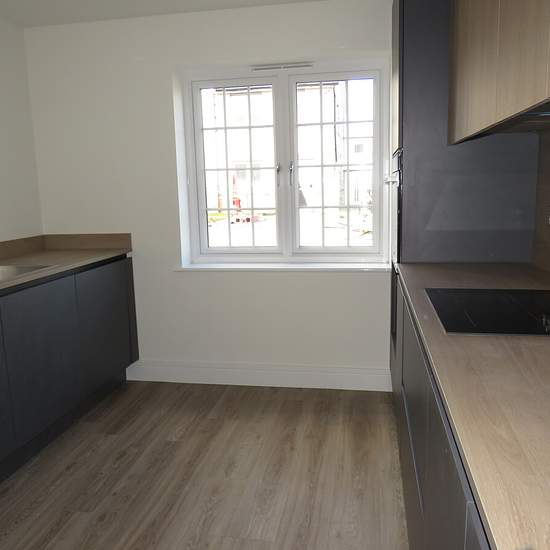 A recently built detached three bedroom home with appliances & driveway parking situated close to the town centre & train station & local retail park. The accommodation comprises open plan designer kitchen and dining area with attractive soft close units & oven & hob. Beyond is a light living area extending through bi-fold doors, into the rear garden. In addition, you'll also find a large WC with plenty of room for storage and a further understairs storage cupboard. On the first floor is a master bedroom, the second small double bedroom whi...