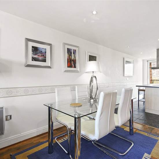 With onsite residents’ gym, concierge, sauna and Jacuzzi, plus secure allocated parking and three balconies including river views, this fifth floor, three double bedroom apartment offers everything you need, all in excellent condition. Presented in excellent condition, the accommodation measures a very generous 108SqM and comprises: - - 33’ x 16’ open-plan reception-dining-kitchen with wood flooring and doors leading on to two South facing balconies; - fully fitted kitchen with access to a third balcony; - family bathroom; - three generous d...