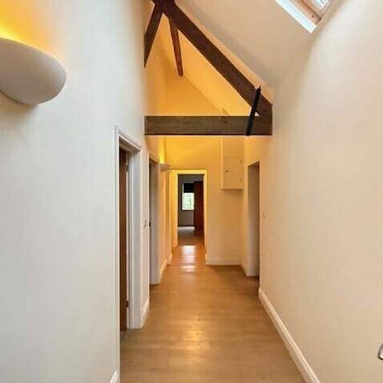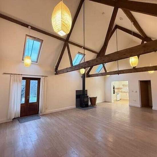 Zero-Deposit-Garantie verfügbar Moderne umgebaute Scheune in semi-ländlicher Lage, gewölbte Decken, Holzbalken, offener Wohn-/Essbereich mit Holzofen, Einfahrt und Garten. Die Haustür öffnet sich zu einem großen offenen Wohn-/Essbereich, Holzofen, gewölbte Decke mit Holzbalken, Laminatboden, Terrassentür zum Garten, Abstellschrank und Durchgang zur Küche. Die Küche ist mit einer Reihe moderner cremefarbener Schränke und Holzarbeitsflächen ausgestattet, eingelassener Edelstahlsink mit Mischbatterie, Einbaukochfeld, Dunstabzugshaube, eingeb...