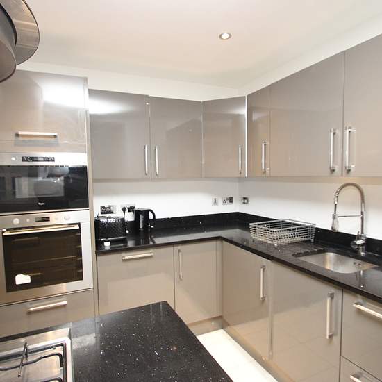 Kautionsfreie Garantie verfügbar Eine luxuriöse Wohnung mit drei Schlafzimmern und zwei Bädern im vierten Stock (mit Aufzug) eines modern umgebauten Gebäudes im Zentrum von Croydon. Direkt über dem Surrey Street Market gelegen, befinden Sie sich in unmittelbarer Nähe sowohl der Hauptbahnhöfe East und West Croydon, der Straßenbahnen sowie aller lokalen Annehmlichkeiten und Geschäfte des Stadtzentrums. Die Wohnung verfügt über eine offene Wohnküche mit Frühstücksbar aus Quarzarbeitsplatte, Einbaugeräten einschließlich Geschirrspüler und Gasko...