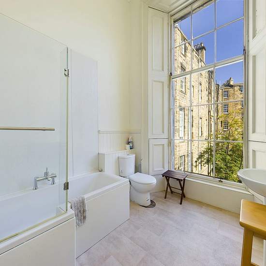 Traditionelle georgianische Dreizimmerwohnung in dieser exklusiven Straße im New Town von Edinburgh. Doppelt hohe Decken und bodentiefe Sash-and-case-Fenster sorgen dafür, dass überall viel Licht einfällt. *Bitte beachten Sie, diese Immobilie verfügt nicht über eine HMO-Lizenz.* Die Immobilie umfasst: - Eingangshalle - Großzügiger Empfangsraum mit Blick über Moray Place - Separater Essbereich, vom Flur abgehend - Küche - Zwei Doppelzimmer - Drittes Einzelzimmer/Abstellkammer - Familienbadezimmer - Zugang zu den Moray Place-Gärten (£100 pro...