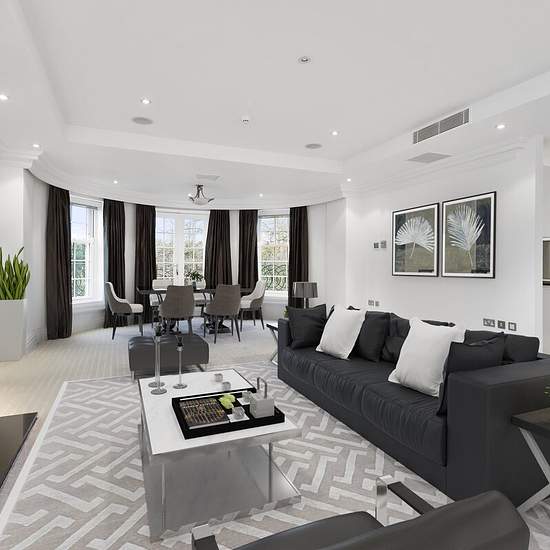 A very large first floor three bedroom/two bathroom apartment of exceptional refinement and sophistication, blending the finest architectural characteristics of the past with the very best of contemporary luxurious living. Behind a gated private entrance enjoying exclusive lifestyle facilities including concierge, gym and leisure room, 24hr security and underground parking. Features include; Crestron mood lighting system controlled by push button dimming controls, fully fitted spacious bespoke kitchen featuring stone work surfaces and a full...