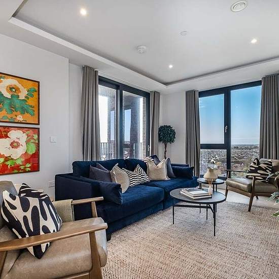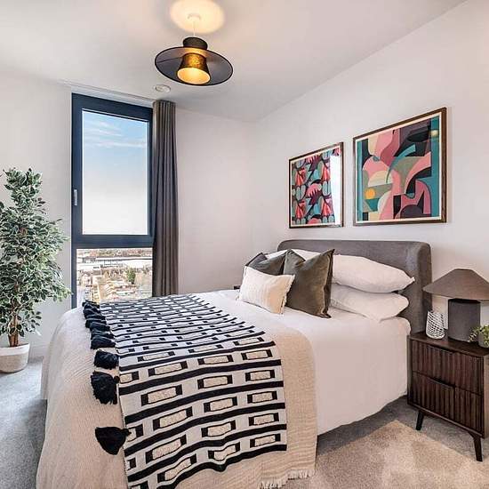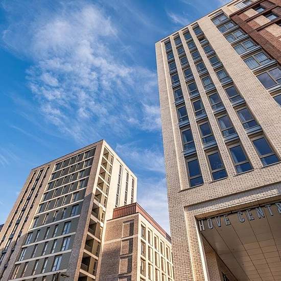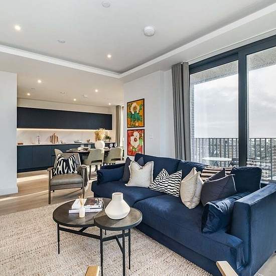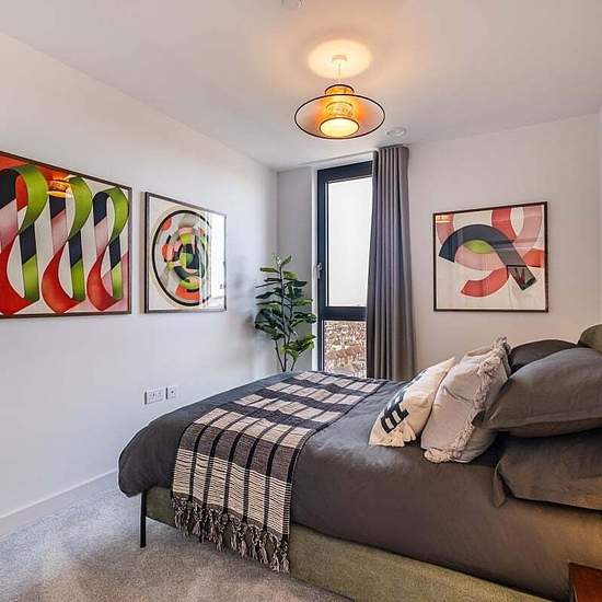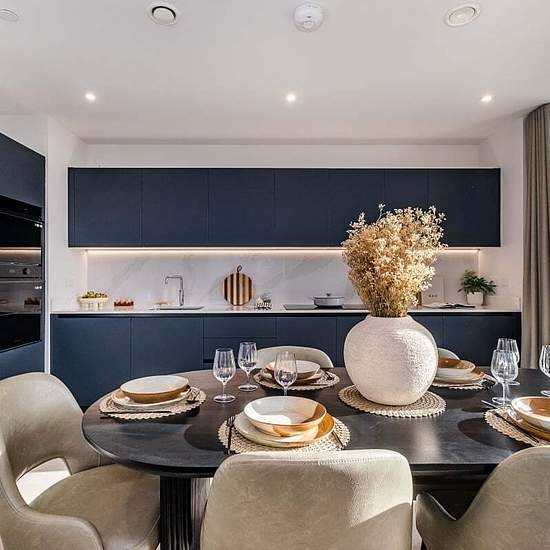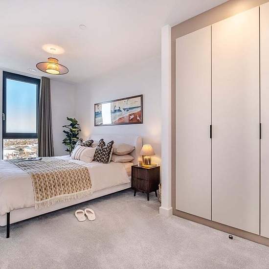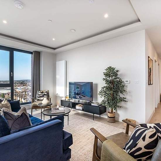 Welcome to Moda, Hove Central, a thriving neighbourhood with 564 beautifully designed homes, from studios to three-bedroom apartments. Designed by Amos & Amos, each home features Samsung integrated appliances and stunning views of the sea, South Downs, and city. The modern three-bedroom apartment pent-house apartments feature an open-plan lounge, kitchen, and dining area with floor-to-ceiling windows and a Juliette balcony overlooking the sea. The sleek kitchen includes quartz worktops, integrated appliances, and dining space for six. The p...