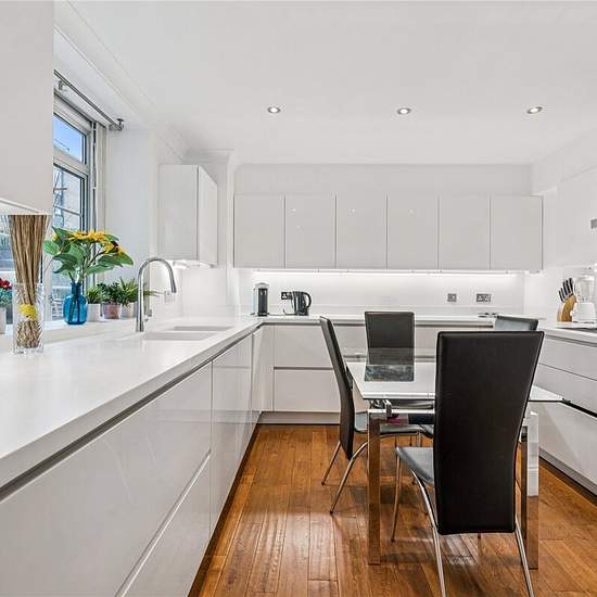 A spacious lateral apartment on the 1st floor with lift and day porter. This apartment is approx 1800 square feet and has access to both Queensway and Inverness Terrace. Parking is also available by separate negotiation. This apartment offers a generous reception room with dining area, separate full fitted kitchen with utility room, 3 double bedrooms with fitted wardrobes, 2 bathrooms (both en-suite) and an additional guest w/c. The property further benefits a private balcony overlooking Queensway and a patio garden at the rear. Inver Court ...