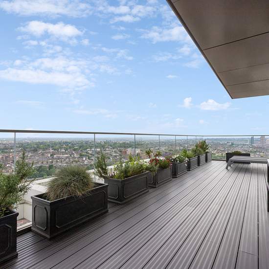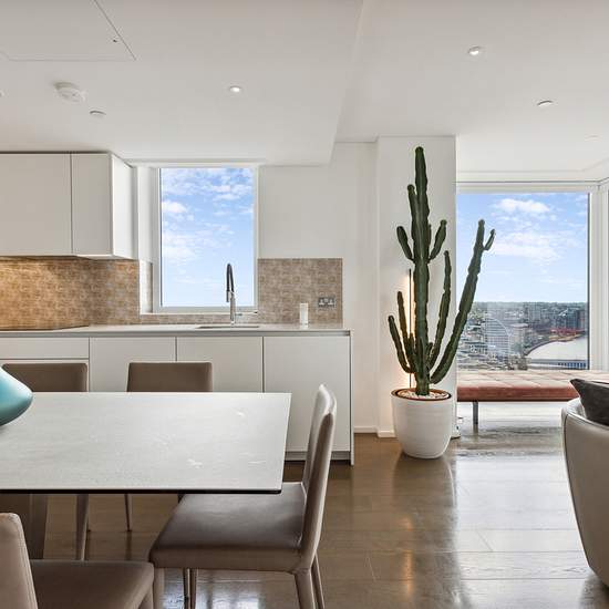 Exquisite sub penthouse apartment encompassing half of the 22nd floor in Coda Residences. The property is excellently furnished to the highest standard and enjoys river views from the front balcony, as well as views South East from the private terrace adjacent. The open plan kitchen / reception room offers striking views of the River Thames through floor to ceiling windows that open up onto a generous secluded balcony. The bespoke kitchen was made with unique design features in mind allowing ample storage and natural light to brighten ever c...