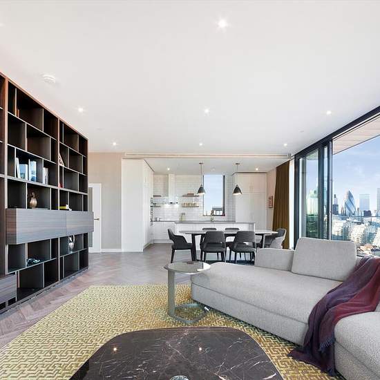 Knight Frank are pleased to offer this luxurious three bedroom apartment set on the 21st floor of this well presented building, in the stylish London Dock Development. This stunning property features a bright and spacious open plan reception room with dining area and a modern fully fitted kitchen with island with top-tier integrated appliances, including an induction hob and a dedicated wine fridge. The floor to ceiling windows lead into a large balcony with breath-taking panoramic views of the City, perfect to entertain guests or relax afte...