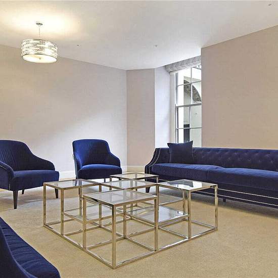 This is a recently renovated and beautifully designed apartment, which spans about 2,741 sq. ft. and is located in an impressive Grade II listed Robert Adam building on Portland Place. The property comprises a luminous reception room, a spacious kitchen that is fully equipped and has direct access to one of the patios, a separate dining room, a master bedroom with a dressing room and an en-suite bathroom, two additional double bedrooms (both en-suite), a utility room, and a guest cloakroom. Portland Place is a prominent street located in the...