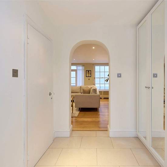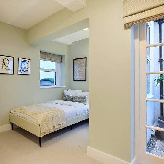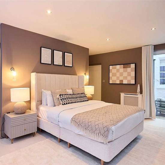 A generously sized three-bedroom lower ground floor apartment near Hyde Park, featuring an open-plan living and dining area, three en-suite bathrooms, and private terraces to the front and rear. The property includes a fully equipped kitchen, a guest WC, and direct outdoor access from both the reception and dining spaces. Two bedrooms offer king-size beds, while the third provides a small double, each with its own en-suite for added comfort. Perfect for families or professional sharers seeking a prime Central London location.