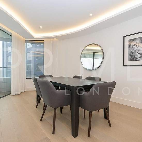 Eine helle, flussseitig gelegene Dreizimmerwohnung mit 1.349 sq ft (125,34 m²) und privatem Balkon, über Prime London zur Miete verfügbar in der sehr gefragten Luxusentwicklung The Corniche. Die Immobilie besteht aus einem großen offenen Wohn- und Küchenbereich mit Blick auf die Themse und das Parlamentsgebäude, drei Doppelzimmern mit reichlich Stauraum, jeweils mit eigenem Bad, sowie einem separaten WC und weiterem Stauraum im Flur. The Corniche (entworfen von Foster & Partners) bietet einige der eindrucksvollsten Ausblicke Londons, nicht n...
