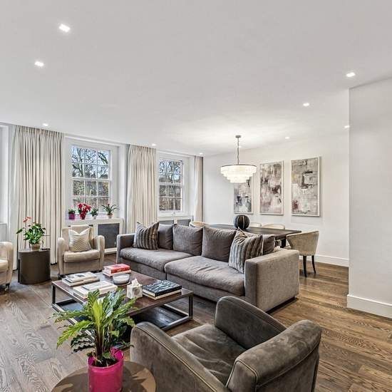 This spacious three-bedroom lateral apartment takes up the third floor of an imposing red brick building in this highly prestigious postcode. It benefits from direct lift access, a resident caretaker and views of the gardens on Cadogan Square’s west terrace. Cadogan Square stands out as one of the most prestigious addresses in Knightsbridge, with easy access to the international fashion boutiques of Sloane Street and Knightsbridge. Sloane Square and Hyde Park are just a short walk away.