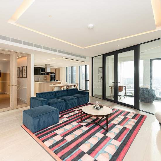 3B4B | Gym | Lounge | Cinema Room | Minutes from Nine Elms Station | Private Balcony | 24-Hour Concierge | Contemporary Open-Plan Kitchen Located within the prestigious River Park Tower development, this expansive three-bedroom, four-bathroom apartment exemplifies luxury riverside living, offering contemporary elegance, generous proportions, and panoramic views across London’s skyline. The bright open-plan living and dining area is framed by floor-to-ceiling windows, flooding the space with natural light and seamlessly connecting to a sleek,...