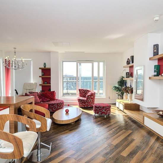 Zero Deposit Guarantee Available MANN Woolwich are delighted to present this exceptional top-floor, split-level three-bedroom penthouse apartment in the highly sought-after Building 22, located within the historic Royal Arsenal development in Woolwich. This spacious penthouse features three generous bedrooms, including a luxurious en-suite master, and a modern family bathroom. Boasting a bright and airy reception room, the apartment opens onto an L-shaped terrace—perfect for entertaining or enjoying the breathtaking, far-reaching views ove...