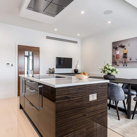 A stunning, interior-designed three-bedroom, four-bathroom townhouse set within a private, gated riverside development with parking. Spread over four floors, this contemporary home features three river-facing balconies, a bespoke high-gloss Macassar kitchen with integrated Miele appliances (including wine cooler), and a Crestron Home Automation System managing lighting, climate, and media. The light-filled ground floor offers a spacious eat-in kitchen/breakfast area overlooking the Thames, with a utility room and cloakroom. The first floor h...
