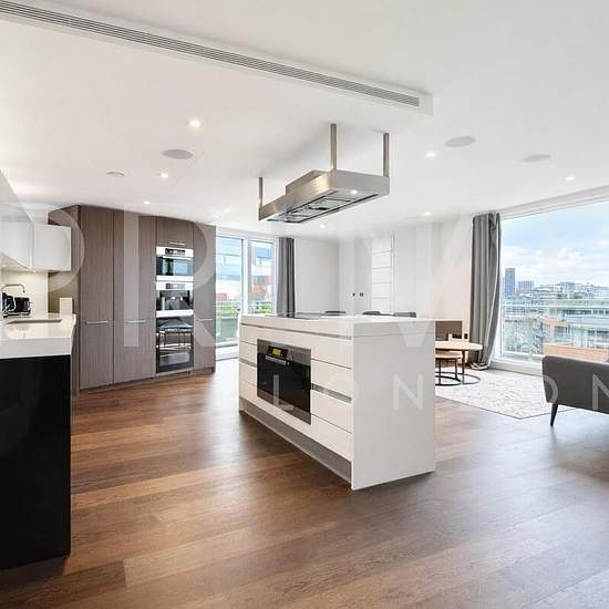 This bright and modern three bedroom apartment, located in the highly sought after Grosvenor Waterside development, is available for lease through Prime London. Spanning 1,475 sq ft (137.03 sqm), the property boasts a generous open plan reception and kitchen area with floor to ceiling windows, allowing for excellent natural light throughout. A key feature of this apartment is the wrap-around terrace, with panoramic views reaching across the city. The three bedrooms are all modern and spacious, with the master bedroom showcasing an ensuite an...