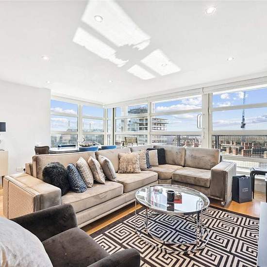 An immaculately presented top apartment benefitting from fabulous views of the London skyline and air conditioning. The property has been refurbished to a very high standard with great attention to detail and comprises a good size open plan reception and kitchen, three double bedrooms (master with en-suite) and further bathroom. The apartment has ample storage and has the added bonus of a balcony. Further benefits include a 24 hour concierge and secure underground parking.