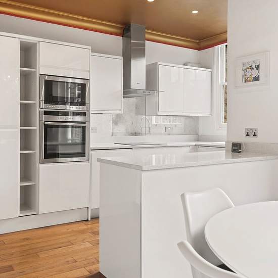 A generously proportioned two–three bedroom lateral apartment on the second floor of a well-maintained period building on Old Brompton Road, thoughtfully styled with playful, contemporary touches throughout. The apartment is beautifully balanced, offering a strong sense of space and natural light. To the rear, a sleek modern kitchen features white cabinetry, integrated appliances including a twin wine fridge, and mirrored splashbacks that reflect light from two large sash windows. There is ample space for dining, enhanced by timber flooring ...