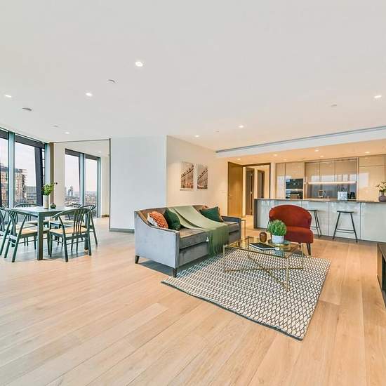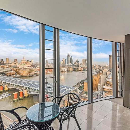 A beautiful three bedroom apartment to rent in the modern development, One Blackfriars. With floor to ceiling windows throughout, natural light floods through, with a winter garden running along the side of the apartment, allowing enjoyment of views over the River Thames and St Paul's Cathedral. The kitchen/reception room is open plan, with a centre island as well as state of the art appliances including oven, coffee machine and wine cooler. The master bedroom boasts a bespoke, floor to ceiling wardrobe allowing for plenty of storage space a...
