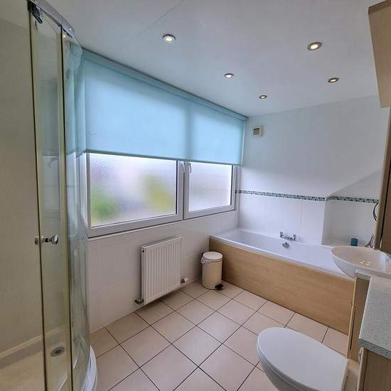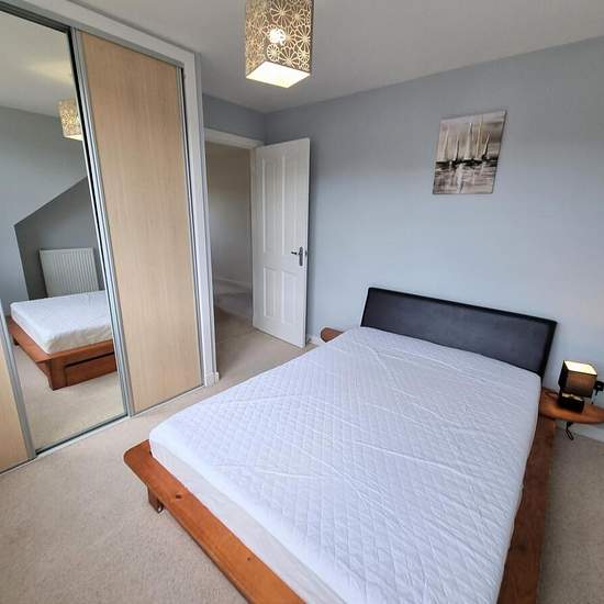 Diese möblierte zur Doppelhaushälfte gehörende Wohneinheit im Erdgeschoss umfasst: Eingangsvorraum und Flur mit Abstellschrank; Wohnzimmer mit Gaskamin (die auf den Bildern gezeigten Sofas sind nicht mehr vorhanden, der Vermieter kann jedoch auf Wunsch eines Bewerbers ein Sofa bereitstellen); Küche mit Gasherd, freistehendem Kühl-Gefriergerät und integriertem Doppelbackofen; Esszimmer; Badezimmer mit elektrischer Dusche über der Badewanne; Einzelzimmer, das zuvor als Arbeitszimmer genutzt wurde. Im Obergeschoss befinden sich drei Doppelzimme...