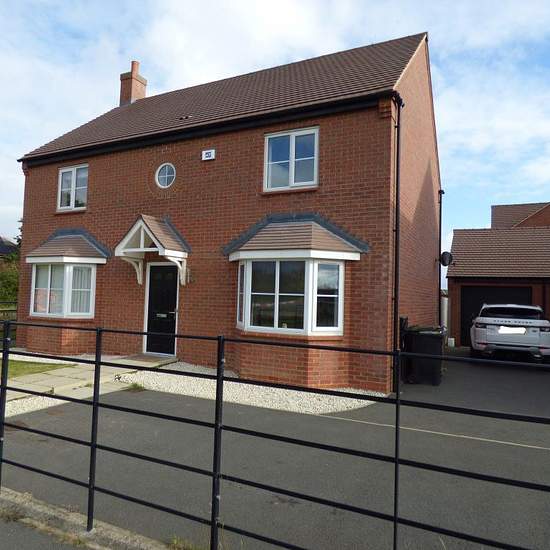 Robert Ellis are delighted to welcome to the market this substantial detached executive style house with a double garage, situated on the rural edge of this new development. The accommodation on offer comprises of entrance hallway with stairs leading to the first floor, ground floor WC with wash hand basin and low level WC, The large lounge with French doors leading to garden, a second reception room, kitchen with matching range of wall and base units with rolled edge laminate work surface built in electric oven, electric hob and extractor f...