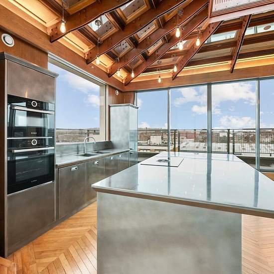 Stunning five bedroom penthouse spanning two floors, featuring a spacious open-plan reception room and kitchen on the top floor. This remarkable penthouse is an architectural masterpiece, offering over 3,000 sq ft of meticulously designed living space across two floors, situated in the heart of Kentish Town, NW5. Delivering stunning 360-degree views of London’s iconic skyline. The upper floor is defined by a vast, open-plan reception room and kitchen, flooded with natural light through expansive floor-to-ceiling windows. This versatile space...