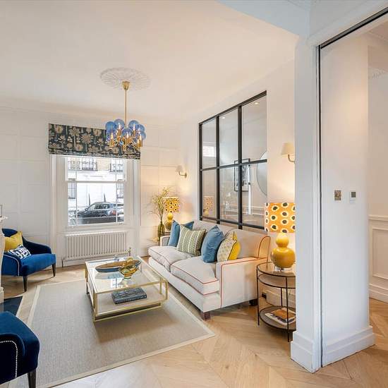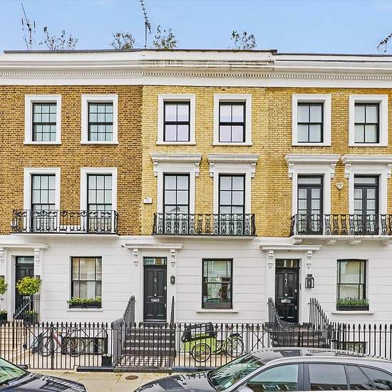 This beautifully designed family home is quietly positioned on the eastern edge of a charming cul-de-sac, located on a sought-after residential street just off Vintners Row. Thoughtfully reimagined by its current owners, the property offers a flexible layout ideal for modern family living. The ground floor boasts an impressive and bright double reception room with garden views through a striking glass extension leading onto a private balcony. The lower ground floor provides expansive open-plan living spaces. The stunning Tom Howley kitchen w...