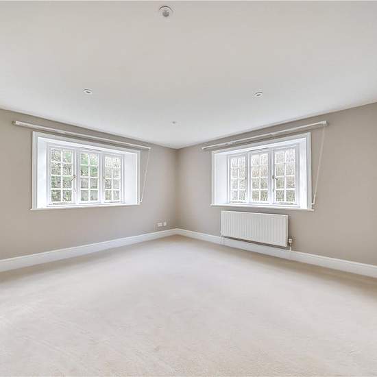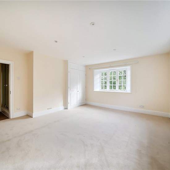 A substantial 4 bedroom farmhouse in a rural location overlooking open fields and woodland within the popular village of Bucklebury. Refurbished to include redecorating and new carpets. Offering light and spacious accommodation throughout. Entrance hall, kitchen/dining room with a range of units, gas range cooker and french doors to the terrace with far reaching views, cloakroom, double aspect sitting room with wood burner and doors to the garden, dining room and further reception. Principal bedroom with ensuite bathroom, second bedroom with...