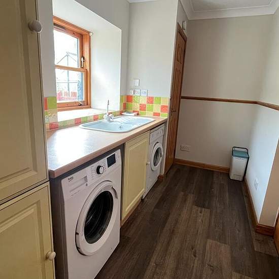 Diese unmöblierte Immobilie verfügt über einen Eingangsflur mit Einbauschrank, der zum Wohnzimmer mit elektrischem Kamin und französischen Türen zu einer Terrasse führt; Küche/Essbereich mit Elektroherd, Geschirrspüler und Kühlschrank; Hauswirtschaftsraum mit Stauschrank(en), Waschmaschine, Wäschetrockner und Tür zur integrierten Garage. Im Erdgeschoss gibt es ein Einzelzimmer mit Einbauschränken sowie ein Doppelzimmer ebenfalls mit Einbauschränken und eigenem Bad (en-suite); Badezimmer mit Badewanne. Im Obergeschoss befinden sich drei Doppe...