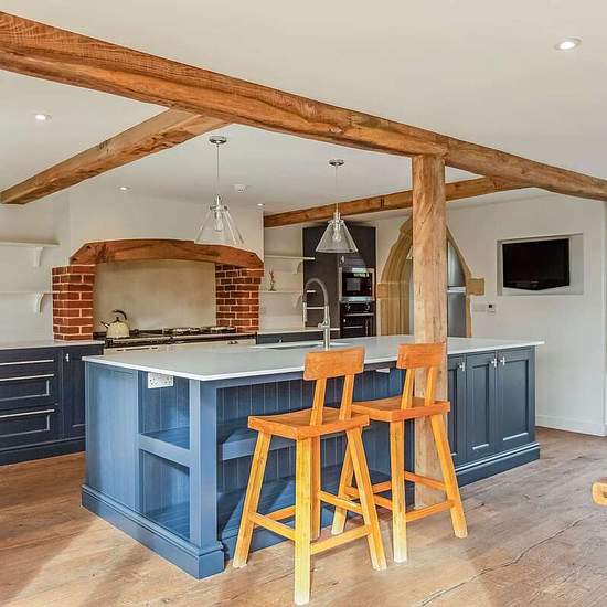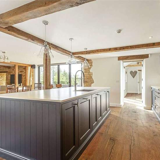 Eine freistehende, umgebaute Scheune, die geräumige, hochwertige Wohnräume über drei Etagen bietet. Das Erdgeschoss ist das Zentrum des Hauses mit einer großen, offenen Küche/Essbereich mit Kücheninsel, großem Herd (Range Cooker), hochwertigen Einbauten und separatem Hauswirtschaftsraum. Angrenzend an diesen Raum befindet sich ein behaglicher Bereich mit Holzofen. Es gibt drei weitere Aufenthaltsräume, zwei davon sind ein Wohn-/Esszimmer und ein Wohnzimmer, beide mit Holzöfen. Ein Raum, der derzeit als Fitnessraum genutzt wird, ursprünglich ...