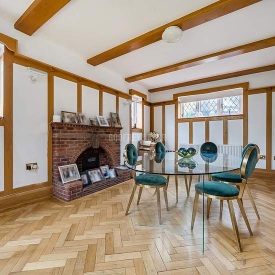 Ein attraktives, geräumiges (3074 sq ft) freistehendes, im Tudorstil erbautes, charaktervolles Familienhaus mit 5 Schlafzimmern und 4 Badezimmern, gelegen in dieser erstklassigen Seitenstraße unweit von Parkside und nur einen kurzen Fußweg vom Mill Hill Park entfernt. Zur Ausstattung gehören zwei separate Wohn-/Empfangsräume, ein großer offener Küchen-/Familienbereich, ein hübscher Garten mit Gartenhaus, eine Doppelgarage sowie zwei Außenstellplätze.