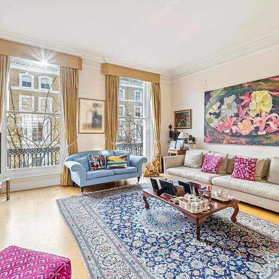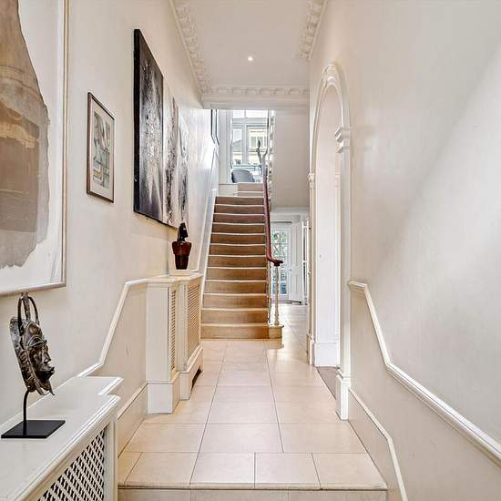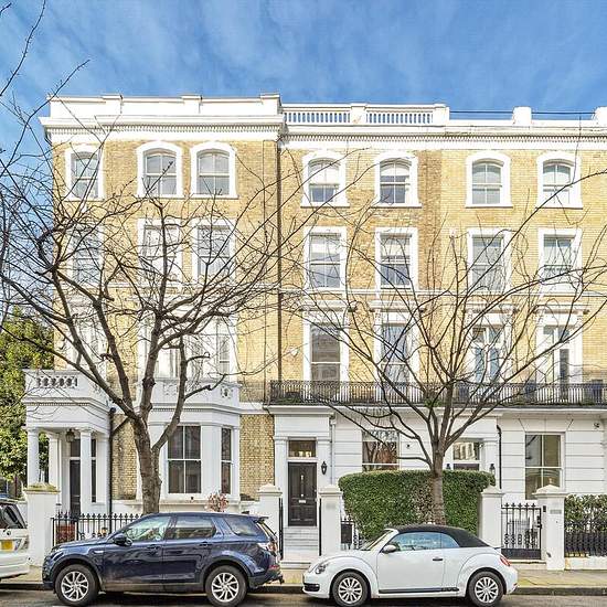 Dieses imposante Altbauhaus bietet eine seltene Gelegenheit, ein elegantes und großzügiges Zuhause in einer der attraktivsten Wohnstraßen Chelseas zu erwerben. Das Anwesen erstreckt sich über fünf Etagen und besticht durch durchweg großzügige Raumverhältnisse, hohe Decken, viel natürliches Licht und eine ausgewogene Raumaufteilung, die sowohl für Familienleben als auch für Unterhaltung geeignet ist. Die Haupträume liegen im Hochparterre und im ersten Stock und präsentieren eine Reihe wohlproportionierter Repräsentationsräume. Große Sprossenf...